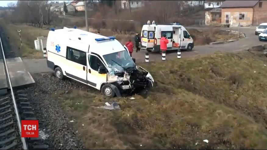 "Карета скорой" и дизель-поезд столкнулись на переезде на Львовщине