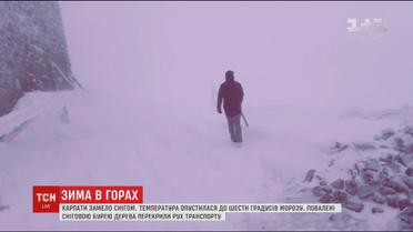 Зима пришла в Украину, а точнее в Карпаты. В высокогорье снега уже пятнадцать сантиметров. Видео метели, едва не сносит с ног на горе Поп Иван, где расположена метеостанция, выложили в сеть пользователи. Снег не тает, потому что температура в горах опустилась до минус шести. Из-за метели ничего не было видно уже на расстоянии тридцати метров. Ночью очень сильный ветер повалил три десятка деревьев, разбили 3 автомобиля, и пообрывал электропровода.