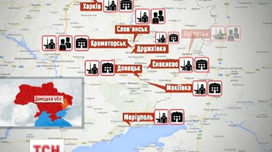 Карта городов, которые оккупировали сепаратисты