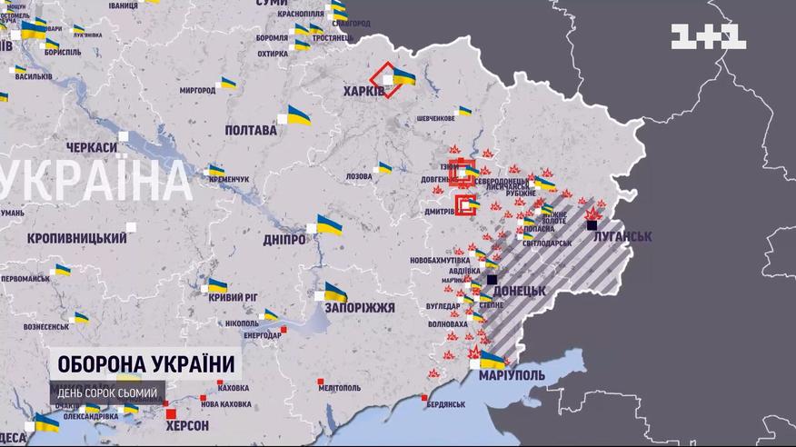Россия наращивает силы для решающего сражения за Донецкую и Луганскую области. Оперативная карта войны на сегодняшний день такова: враг готовится к наступлению на Востоке. Оккупанты блокируют Харьков. Спальные районы города – под обстрелами. В блокадном Мариуполе враг при поддержке артиллерии и авиации штурмует завод "Азовсталь" и морской порт.