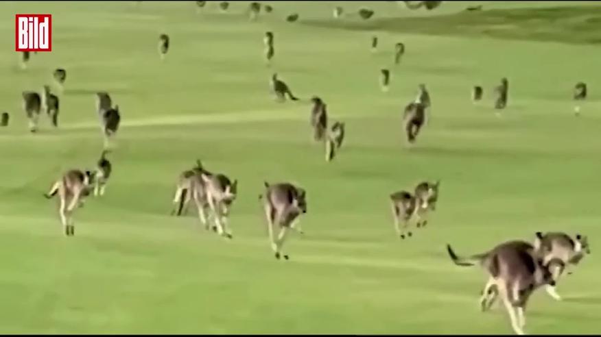 В пригороде Мельбурна стадо кенгуру внезапно выбежало на территорию гольф-клуба. Гольфистам даже пришлось прервать игру, пока сотни животных пересекали поле для игры. В гольф-клубе рассказали, что во время таких внезапных визитов кенгуру только оставляют следы и не наносят никаких существенных повреждений полям для гольфа.