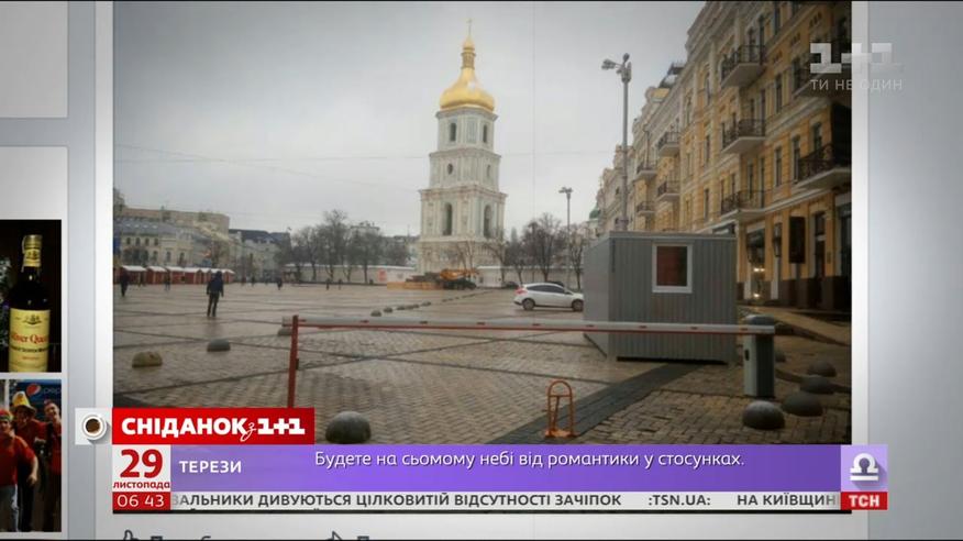 Киевлян и гостей города возмутил маленький вагончик на Софийской площади