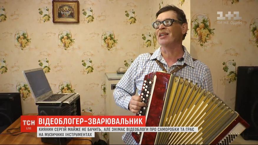Киевлянин Сергей почти не видит, но снимает видеоблоги и играет на музыкальных инструментах