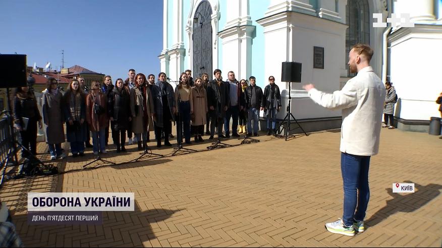 Киевское студенчество музыкальных заведений спело "Ой, в лугу красная калина" под открытым небом