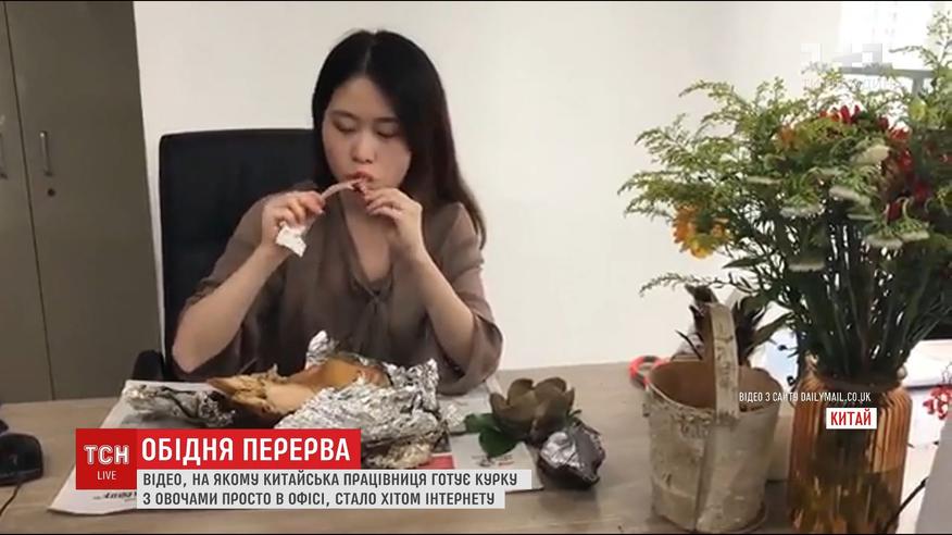 22-летняя женщина сняла процесс приготовления. Овощи для курицы нарезала пластиковой карточкой, потом завернула мясо в фольгу, присыпала углем и запекла в горшке от офисной пальмы. Все это время коллеги китаянки не обращали на кулинарку никакого внимания. Женщина признается, что готовить любит, и ради развлечения делает это необычным способом.