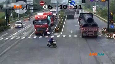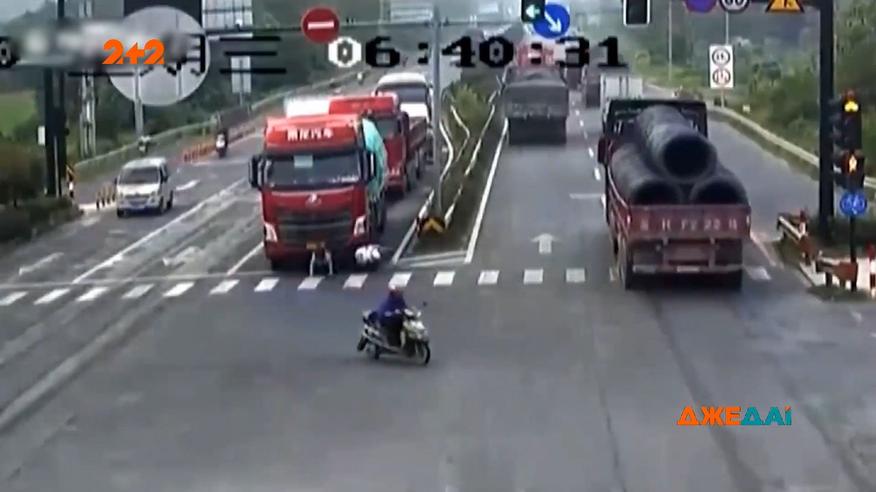 Китайская скутеристка попала под колеса грузовика