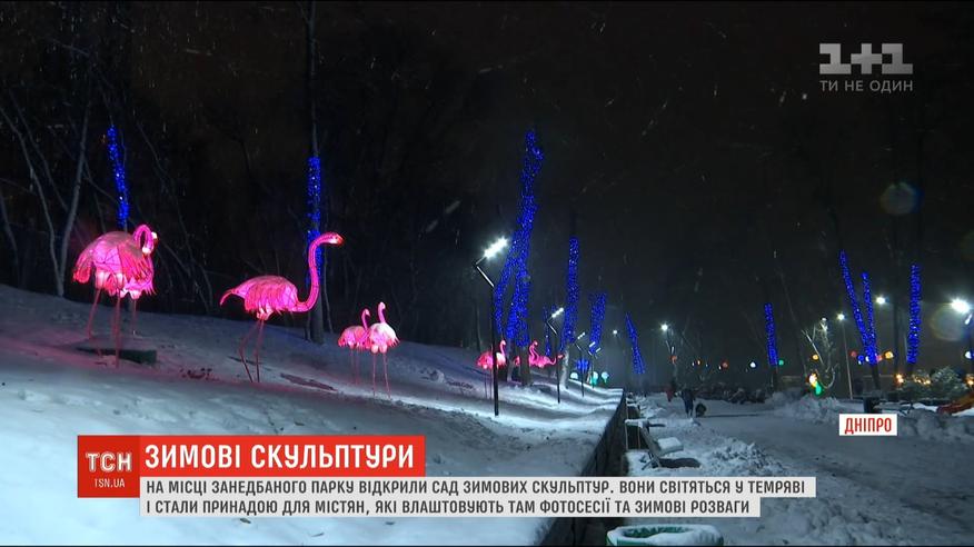 Клумба одуванчиков и поляна фламинго: в Днепре открыли зимний парк цветов