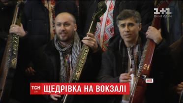 Коллектив бандуристов поздравил украинцев с Рождеством среди железнодорожного вокзала в Киеве