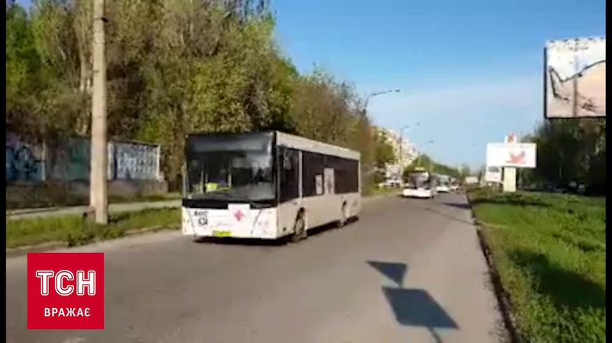 Колонна автобусов двинулась возле оккупированных территорий, чтобы эвакуировать людей