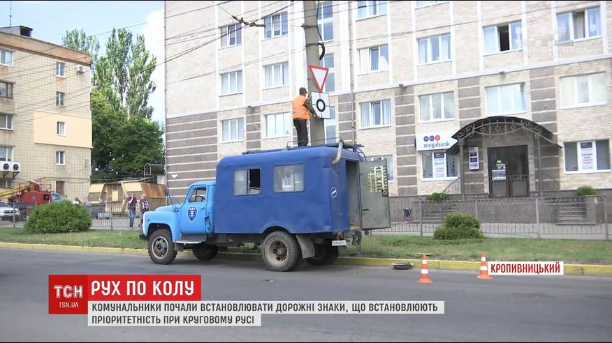 Коммунальщики начали устанавливать дорожные знаки, определяющие приоритетность круга
