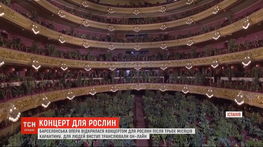 Барселонская опера наконец открылась, но из-за риска заражения, людей в зале не было. Зато на сиденьях разместили три тысячи вазонов. Для растений выступал струнный квартет с миниатюрой "Хризантемы" Джакомо Пуччини. Остальные аудитории могла послушать концерт онлайн.