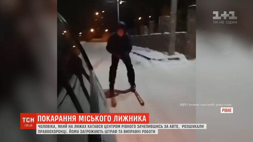 Копы нашли мужчину, который катался на лыжах по улицам Ровно, зацепившись за авто
