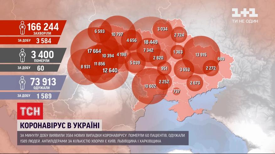 За прошедшие сутки в Украине зафиксировали рекордные - 3584 новых случаев коронавируса. Выздоровели 1589 пациентов, 60 человек умерли. Больше всего инфицированных сейчас в Киеве, Львовской и Харьковской областях. С начала пандемии COVID-19 обнаружили почти 166 тысяч украинцев. Больше о коронавирусе в Украине