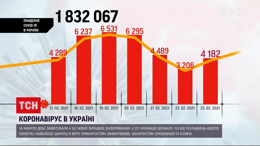 Количество больных коронавирусом после выходных снова растет. За минувшие сутки положительные тесты получили 4182 человека. Выздоровели больше 4351 украинцев. 153 от осложнений болезни умерли. Больше всего ширится вирус Прикарпатьем - там заболело более семи десятков человек. Из-за вспышки вируса в области накануне развернули 16 блокпостов, где измеряют температуру. Среди лидеров также Киев, Винницкая область, Закарпатье и Буковина.