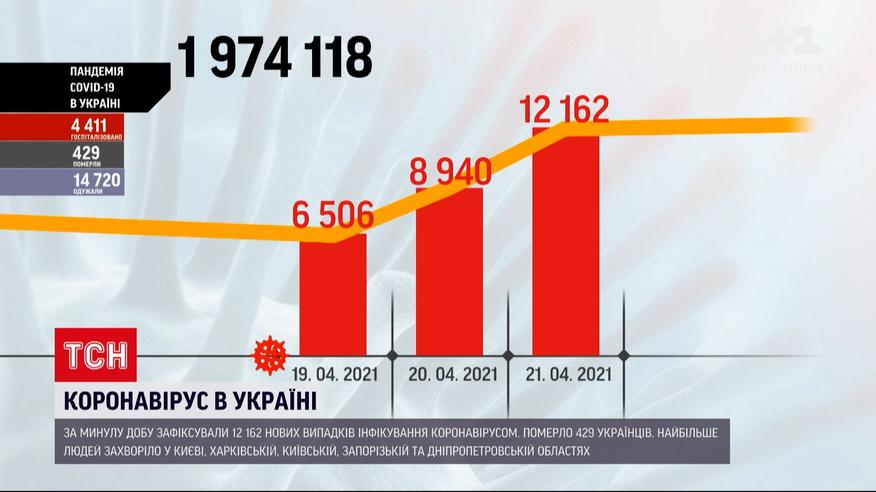 Госпитализаций и смертей снова увеличилось. 12 162 новых случаев инфицирования - статистика коронавируса уже привычно к концу недели растет вверх. Вдвое больше, чем накануне, госпитализировано пациентов - почти 5 тысяч. 429 украинцев умерли. Около тысячи человек заболели COVID-19 только в столице. Сколько же в Харьковской области, лидерами также является Киевская, Запорожская и Днепропетровская область. А вот меньше бурлит недуга сейчас на Буковине и Закарпатье.
