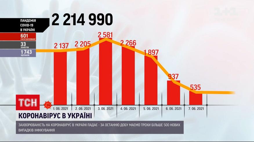 Заболеваемость коронавирусом в Украине пошла на спад. По крайней мере, об этом свидетельствует статистика - за прошедшие сутки имеем чуть больше полутысячи новых больных. За выходные, как правило, фиксируют значительно меньшее количество диагнозов, чем в будни. Но даже учитывая это, такой показатель в последний раз был почти год назад. Между тем в Украине продолжается кампания по иммунизации. Ее темпы ускорили центры массовой вакцинации, которые развернули уже в 10 городах. Больше о коронавирусе в Украине