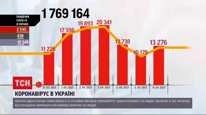 Чуть больше 13 тысяч новых инфицированных, резко возросла смертность. За прошедшие сутки от осложнений коронавируса в Украине умерли 420 человек. Госпитализация понадобилась более 2,5 тысячам больных. Но выздоровели почти в 5 раз больше. В то же время, министр здравоохранения считает, что идет третья волна коронавируса и в ближайшие две недели уровень суточной заболеваемости достигнет 25 тысяч случаев.