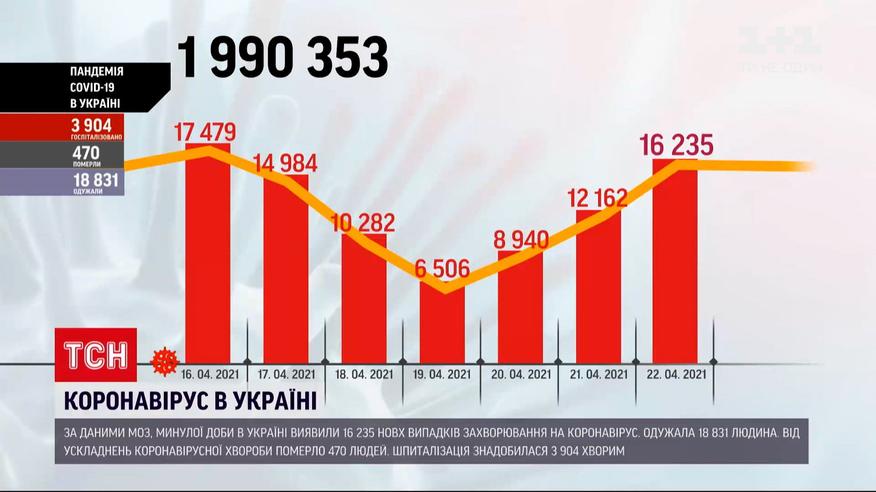 Больше выздоровело, чем заболело. За прошедшие сутки в Украине обнаружили 16 235 новых случаев коронавируса, а вот преодолеть недуг смогли почти 19 тысяч. От осложнений болезни умерли 470 человек. Почти четырем тысячам больных потребовалась госпитализация. Больше всего новых случаев инфицирования в столице, в Харьковской, Киевской, Запорожской областях. Все они - в "красной" зоне. Больше о коронавирусе в Украине