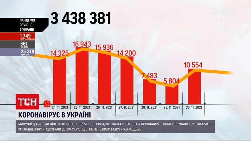 Рекорд выздоровления на фоне высокой смертности. За прошедшие сутки более 25 тысяч человек выздоровели от коронавируса, но не пережили недуг 561 украинец. Новые случаи зафиксировали более 10 с половиной тысяч. В Минздраве говорят, что ситуация с коронавирусом в Украине постепенно улучшается. Случаев нового штамма "Омикрон" в стране пока не зафиксировано, но у мин здравоохранения говорят, это только вопрос времени.