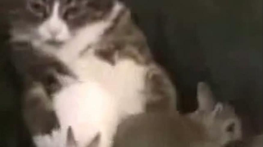 Кошка "усыновила" маленьких зайчат