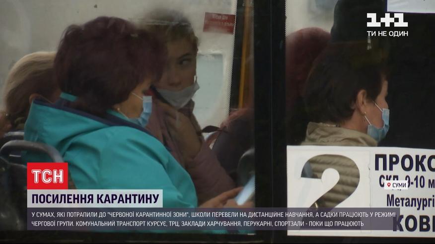 Новое карантинное зонирование: в "красной зоне" - Канев Черкасской области и один областной центр - Сумы. Единственный "зеленый" регион ныне - Кировоградская область. В остальных областях ситуация ухудшилась, и они попали в "желтую" или "оранжевую зоны" карантина. Среди них - столица. "Оранжевый" статус означает отмену плановых операций и плановую госпитализацию больных, запрет работы хостелов и уменьшение клиентов в фитнес-центрах. В "красной зоне" ограничения самые строгие. В Сумах закрыты школы, полупустые остановки и штрафы за неношение масок. За последние сутки в городе - рекордные цифры заражения. Как усилили карантинные меры и прислушивались ли к этому горожане - расскажет ТСН.