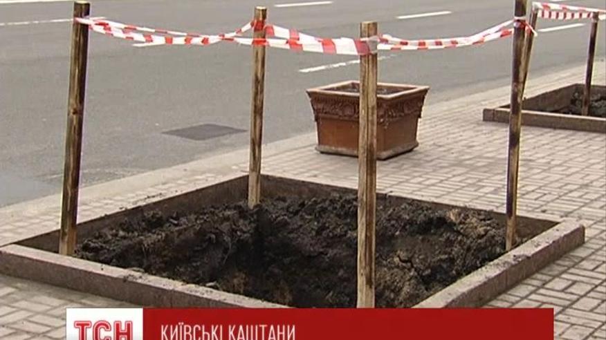 Этот капитальный ремонт зеленых насаждений проводит столичный "Зеленстрой". Вдоль улицы выкопали все деревья. Зато, посадят каштаны.