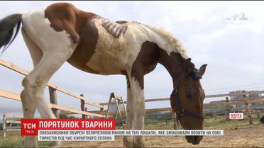 В Одессе зоозащитники нашли на улице жеребенка, которое заездили до инвалидности. Ветеринар, осматривавший животное, ужаснулся потому, что делать это можно только с трех лет. От перегрузки в годовой лошади появилась огромное рана, которая постоянно кровоточила.