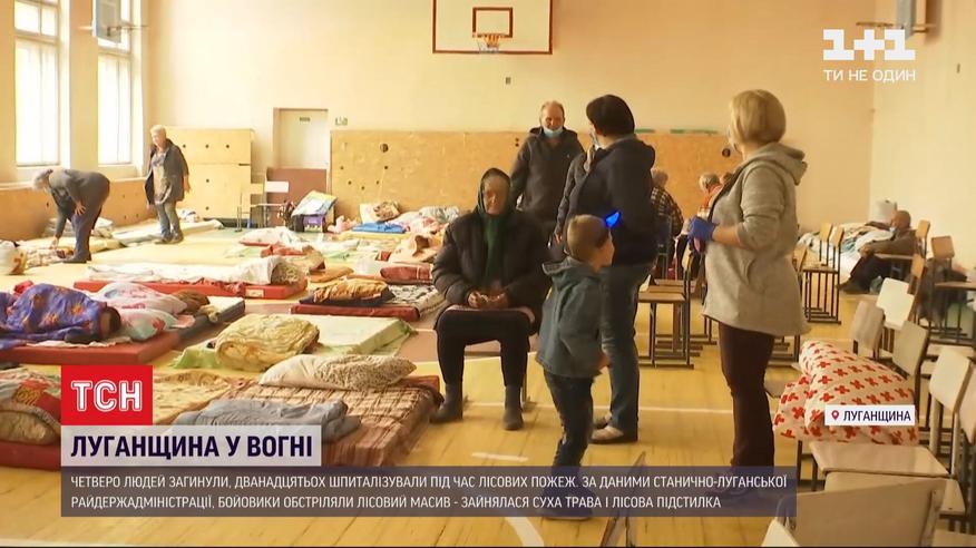 Людей, которые потеряли свое жилье в результате пожаров, эвакуировали в школу в Северодонецке