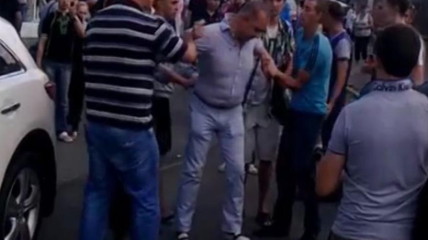 В Киеве толпа людей чуть не устроила самосуд над пьяным водителем "Инфинити", который спровоцировал ДТП на Шулявке. Видео пользователя Юрий Сколозубов на youtube