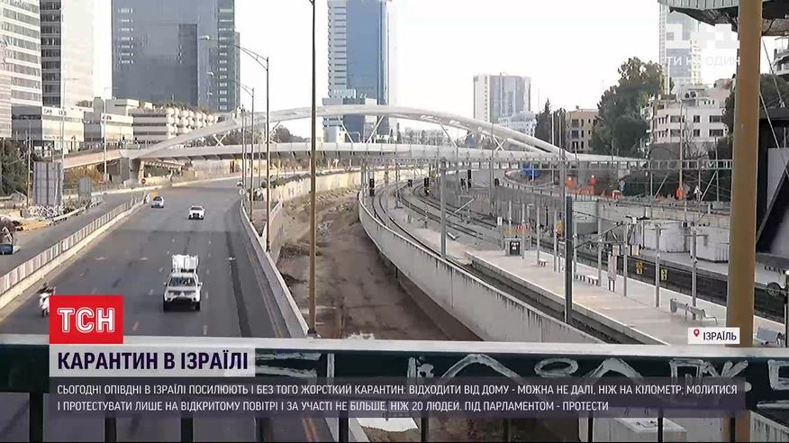 Жесткий карантин в Израиле. Сегодня в полдень там усиливают и без того строгие ограничения, потому что количество больных на коронавирус возросла. В правительстве объявили: люди не смогут удаляться от дома более чем на километр. А религиозные собрания и протесты - на открытом воздухе и при участии не более 20 человек. Это решение должны еще подтвердить в парламенте, ведь речь идет об ограничении конституционных прав.