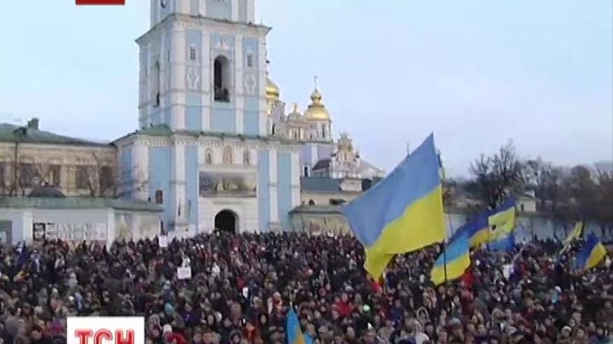 Часть демонстрантов, после утреннего штурма, забаррикадировалась на территории Михайловского собора. С самого утра на площадь возле златоверхого начали подтягиваться активисты евромайдана и неравнодушные киевляне.