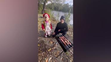 Маленькая украиночка растрогала, как со своим братом готовит банош на природе