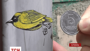Маленький уличный рисунок разместили на трубе старого дома в центре города. Птичка имеет сантиметр высоты и два длины. Зяблика изобразила художница-график из столицы. На минимализованом граффити тщательно прорисованные детали птицы хорошо видно когти, клюв и перья.