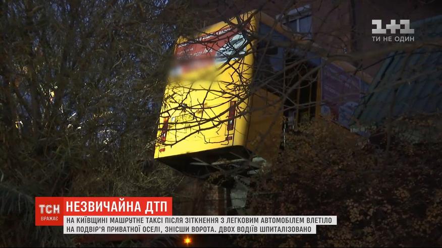 Маршрутка влетела во двор частного дома в селе под Киевом