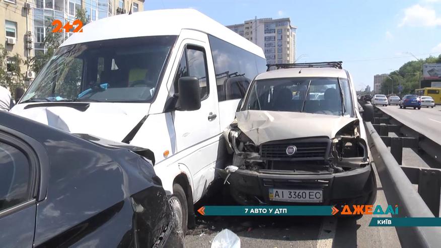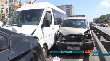 Сплошной затор сковал столичный проспект Победы. Из-за масштабной аварии остановилось движение в одну сторону. В дорожное происшествие попало семь авто и некоторые из них уже не подлежат ремонту. Зачинщик аварии своей вины не исключает, но не может объяснить, что стало ее причиной. Полные выпуски смотрите на 1+1 video