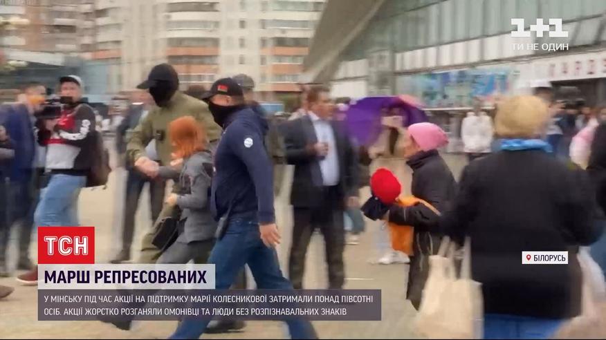В Беларуси в поддержку Колесниковой и остальных оппозиционеров состоялся марш репрессированных. Акция началась возле Минского рынке около 6 вечера и закончилась жесткими задержаниями. К участков забрали более полусотни человек. Причем впервые за 3 недели массово били и забирали и женщин, в том числе пожилого возраста. В толпе уже по отработанному сценарию действовали люди в униформе и камуфляже с балаклавами и без опознавательных знаков. Белорусские СМИ сообщают - людей преследовали даже во дворах.