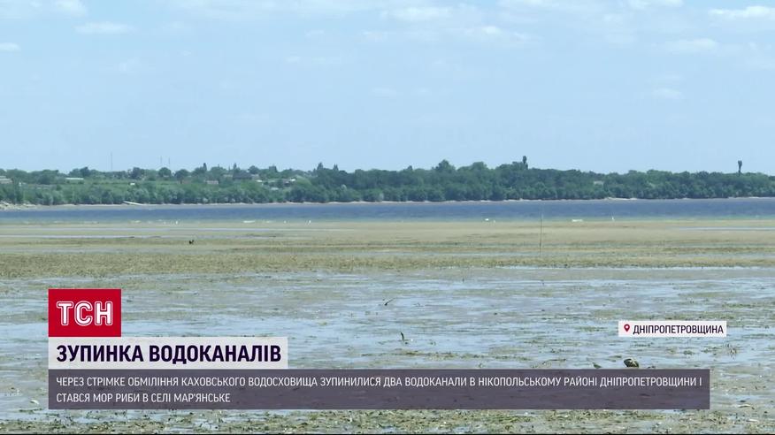 Два из трех водоканалов в Никопольском районе Днепропетровщины остановились из-за стремительного снижения уровня Каховского водохранилища. В общины начали подвозить воду. Напряженная ситуация и в некоторых населенных пунктах Криворожского района. Ведь Каховское водохранилище стремительно мелеет. Кое-где вода отошла от берега более чем на 200 метров. Из-за этого возле села Марьянское произошел массовый мор рыбы. Ее убирали полдня 4 десятка человек. Другие охраняли территорию, чтобы опасная рыба не попала на продажу. Всего с берега вывезли более 850 килограммов рыбы. Ее утилизировали, чтобы не допустить массовых отравлений и вспышки ботулизма.