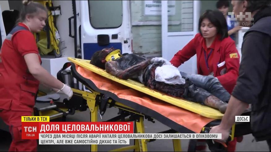 Наталья Целовальникова через два месяца после трагедии уже самостоятельно дышит и говорит. Женщина выжила после взрыва автомобиля возле Бессарабского рынка, до сих пор находится в ожоговом центре. Состояние ее тяжелое, но стабильное. Врачи сделали 8 операций по пересадке кожи. Помощь пострадавшей: карта Приватбанка -5363 5423 0715 2455 (Конева Ирина Михайловна, мама Целовальниковой Натали).