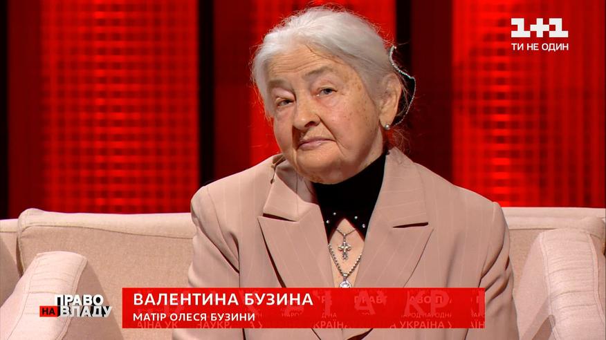Мать Олеся Бузины в ток-шоу "Право на владу" рассказала, что уже седьмой год не может добиться справедливости, а руководит нею не месть, а желание отстаивать свое мнение.