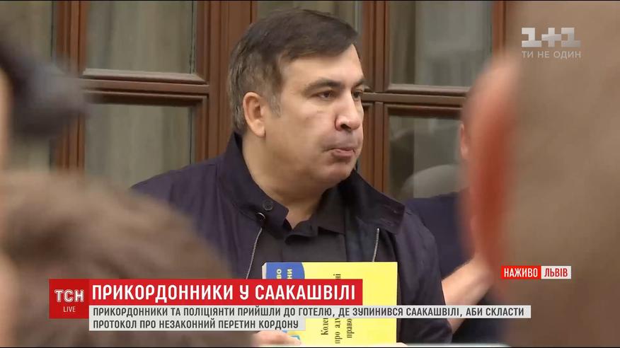 В отель, где Саакашвили живет вторые сутки, пограничники приехали в 7 утра. Сначала мужчины, в футболках с надписью: "Донбасс", не пропускали их к политику, но все-таки протокол Саакашвили передали. После нескольких часов споров экс-президент Грузии все же подписал его.