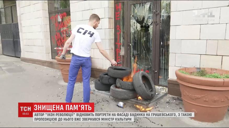 Министерство культуры решило, что делать со стертыми революционными портретами на Грушевского