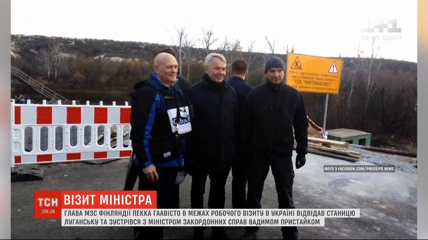 Он вместе с делегацией осмотрели мост, который разрушили во время военных действий, а ныне чинят. Они выразили опасения по поводу безопасности местного гражданского населения и пообещали выделить дополнительные 600 тысяч евро на разминирование востока Украины. Накануне в Киеве финский министр встретился с украинским коллегой Вадимом Пристайко.