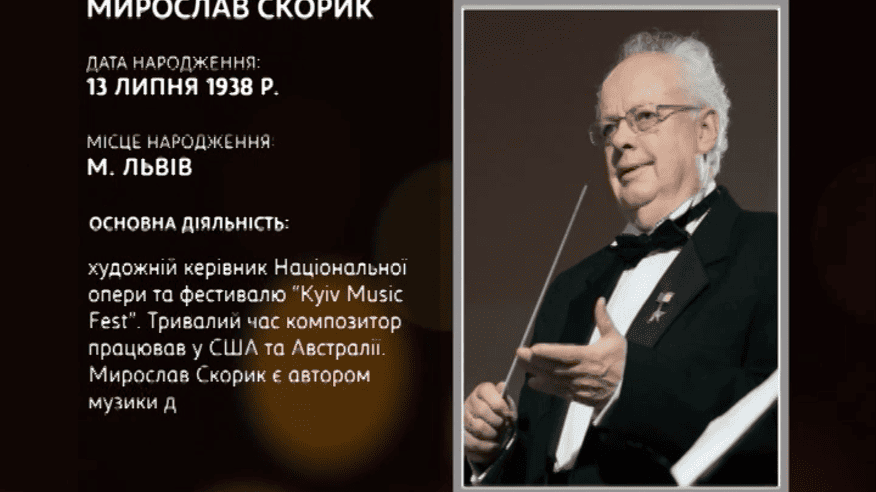 Гость студии программы "Минкульт" с министром культуры Вячеславом Кириленко - Мирослав Скорик, композитор и музыковед, Герой Украины, народный артист Украины, лауреат премии им. Т. Г. Шевченко, кандидат искусствоведения, сопредседатель Союза композиторов Украины в 2006-2010 годах, художественный руководитель Киевской оперы (с 2011). Пан Мирослав вспомнил, как вместе с Сергеем Параджановым работал над фильмом "Тени забытых предков".