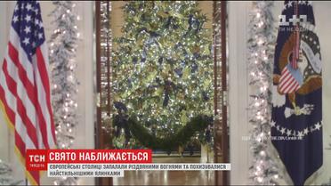 Париж и Лондон практически соревнуются по красоте дизайнерских елок. Сладкую елку установили в "Галери Лафайет", она как усыпана карамельками и крендельками. На Лондонском вокзале гостей города встречает цветущее новогоднее дерево. Стильнее всех, как утверждает пресс-служба Дональда Трампа, украшенный в этом году Белый дом, оформлением которого руководит первая леди.
