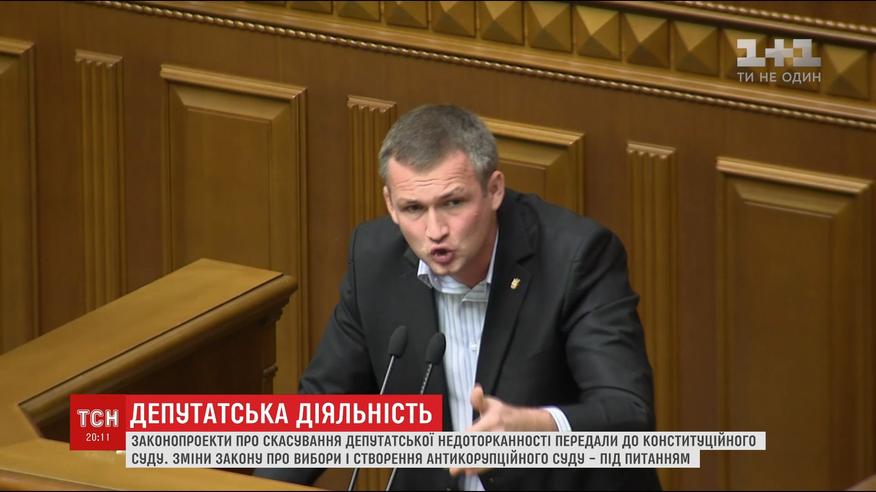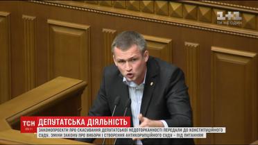 Депутаты сегодня снимали с себя неприкосновенность. Но окончательно избавиться иммунитета можно будет только после заключения Конституционного суда. Под ВРУ демонстранты оказывали постановления парламентариям и провожали их в зал. "Первой победой" митингующие назвали направления двух законопроектов о снятии неприкосновенности в Конституционный суд.