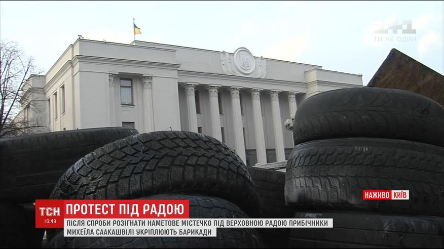 И после утренних попыток правоохранителей прорваться в палаточный городок митингующие течение дня начали укреплять ограждения вокруг территории, опасаясь новых попыток штурма. Особенно, что накануне генпрокурор Луценко дал Саакашвили сутки, чтобы сдаться правоохранителям, и эти 24 часа уже прошли. На вечер под Верховной Радой запланирован новый митинг.