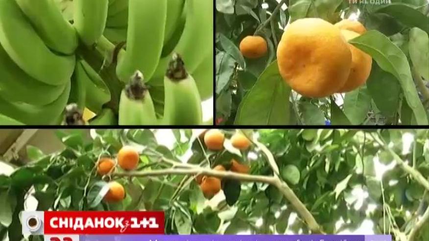 Под Киевом, в селе Рожны, украинский фермер выращивает экзотические фрукты - мандарины, апельсины, лимоны, бананы, ананасы и даже маракуя. Мужчина умудрился построить уникальную теплицу в своем дворе. Большинство деревьев начинает плодоносить уже через несколько лет после высадки. И дают урожай до 7 раз в год.