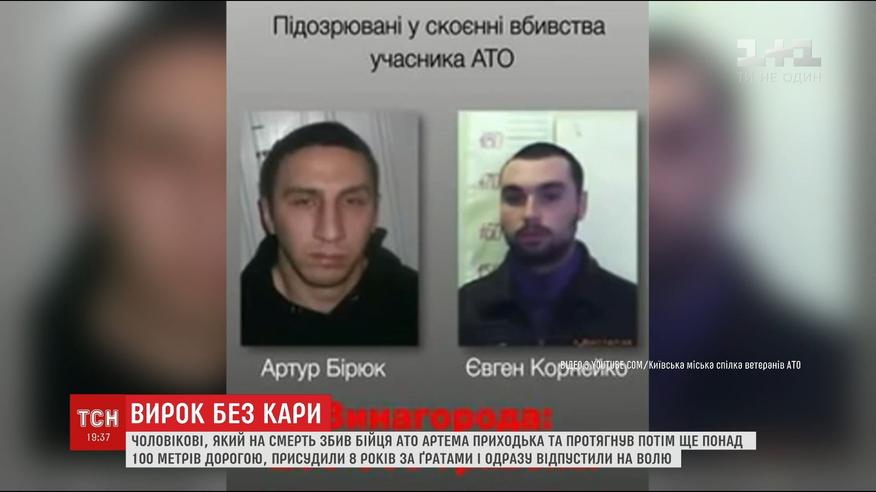 В столице объявили приговор мужчине, который убил бойца АТО Артема Приходько. Присудили восемь лет за решеткой. Он сбил машиной ветерана и протянул более ста метров по дороге. Дело сначала расследовали как убийство, потом сменили на ДТП, в конце концов, освободили из-под стражи по закону об амнистии.