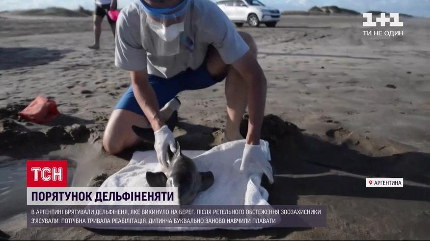 На аргентинском пляже неравнодушные спасли дельфиненка, которого выбросило на берег