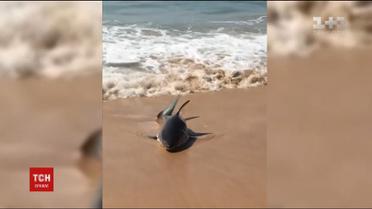 На австралийском пляже спасли маленькую белую акулу